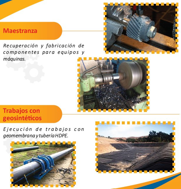 Somos una empresa especializada en brindar soluciones integrales en mantenimiento electromecánico, diseño industrial, trabajos metalmecánicos, mantenimiento eléctrico, maestranza, geosintéticos y soldadura. Contamos con un equipo altamente capacitado y tecnología de vanguardia para atender las necesidades de la industria con eficiencia, calidad y seguridad.